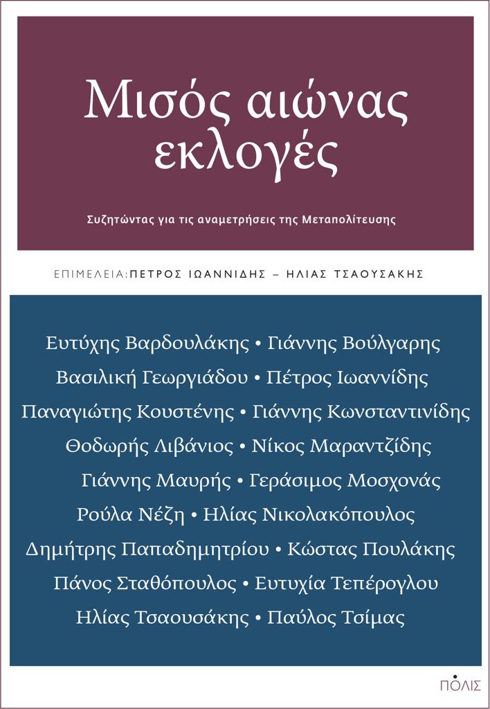 Στο βιβλίο αυτό καταγράφεται μια σημαντική πτυχή της Γ΄ Ελληνικής Δημοκρατίας: όλες οι εθνικές εκλογικές αναμετρήσεις της μεταπολιτευτικής περιόδου 1974-2023. Κεντρικό πυρήνα και βάση του παρόντος τόμου αποτελούν 17 podcasts, συζητήσεις με σημαντικούς συνομιλητές, ακαδημαϊκούς, ειδικούς της πολιτικής επιστήμης, της επικοινωνίας, της ιστορίας και της δημοσιογραφίας, γνώστες της κάθε εκλογικής αναμέτρησης και της αντίστοιχης ιστορικής περιόδου που καθένας και καθεμία πραγματεύεται. Η ιδέα για τη δημιουργία αυτού του ψηφιακού αρχείου συζητήσεων και την επακόλουθη έκδοση του βιβλίου προέκυψε έπειτα από μακρές συζητήσεις των δύο επιμελητών με τον αείμνηστο ομότιμο καθηγητή του Πανεπιστημίου Αθηνών Ηλία Νικολακόπουλο, που ήταν και ο επιστημονικός υπεύθυνος της σειράς. Ο Ηλίας Νικολακόπουλος, βαθύς γνώστης της εκλογικής ιστορίας της χώρας, φιλοδοξούσε μέσα από την καταγραφή των εκλογικών αναμετρήσεων να ιχνηλατήσουμε την πολιτική διαδρομή των τελευταίων 50 ετών, να αναλύσουμε περιεκτικά την κατάσταση που επικρατούσε κάθε περίοδο στα κόμματα, να εντοπίσουμε τα αίτια που οδήγησαν σε νίκες ή ήττες, αλλά και να φωτίσουμε τα πρόσωπα, τους πρωταγωνιστές, τους κερδισμένους και τους ηττημένους αυτών των αναμετρήσεων. Στα κείμενα του παρόντος τόμου αναδεικνύονται οι ιδιαιτερότητες της κάθε εκλογικής μάχης, τα σημεία επαφής, ο ρόλος της διεθνούς κατάστασης, οι ατζέντες των κομμάτων και, φυσικά, η εκλογική γεωγραφία και συμπεριφορά, ο τρόπος με τον οποίο ψήφισαν οι πολίτες. Η περιπλάνηση σε όλες αυτές τις εκλογικές αναμετρήσεις της είναι και ένας τρόπος να προσπαθήσουμε να βρούμε μια απάντηση στο ερώτημα: Τι είναι, τελικά, η Μεταπολίτευση; Είναι, πάνω απ’ όλα, Δημοκρατία, κοινοβουλευτισμός, λύση του Πολιτειακού που ταλάνιζε για δεκαετίες τη χώρα, ευρωπαϊκή πορεία, βελτίωση του βιοτικού επιπέδου. Είναι όμως και πελατειακό κράτος, λαϊκισμός, συντηρητικές συντεχνίες, μεγάλα και μικρά συμφέροντα, πτώχευση και μνημόνια. Μια ιστορία μεγάλων επιτευγμάτων αλλά και μεγάλων αντιφάσεω