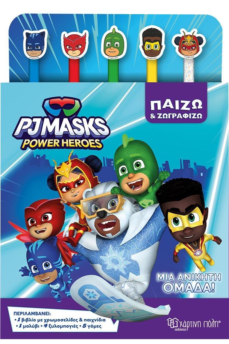 Ένα ξεχωριστό σετ με τους αγαπημένους Πιτζαμο-ήρωες Περιλαμβάνει:• 1 βιβλίο με χρωμοσελίδες και δραστηριότητες• 1 μολύβι• 4 ξυλομπογιές• 5 γόμες